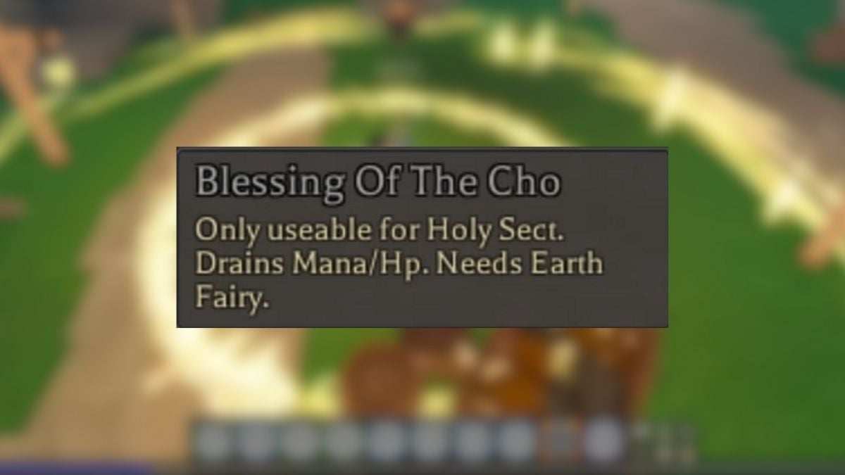 This skill has a one-hour cooldown, and it summons a turtle-like monster and deals huge damage (equivalent to having 500 Intellect), while also draining Mana as well as HP from the target. You also need to have an Earth fairy equipped to use this blessing and be a part of the Holy Sect.